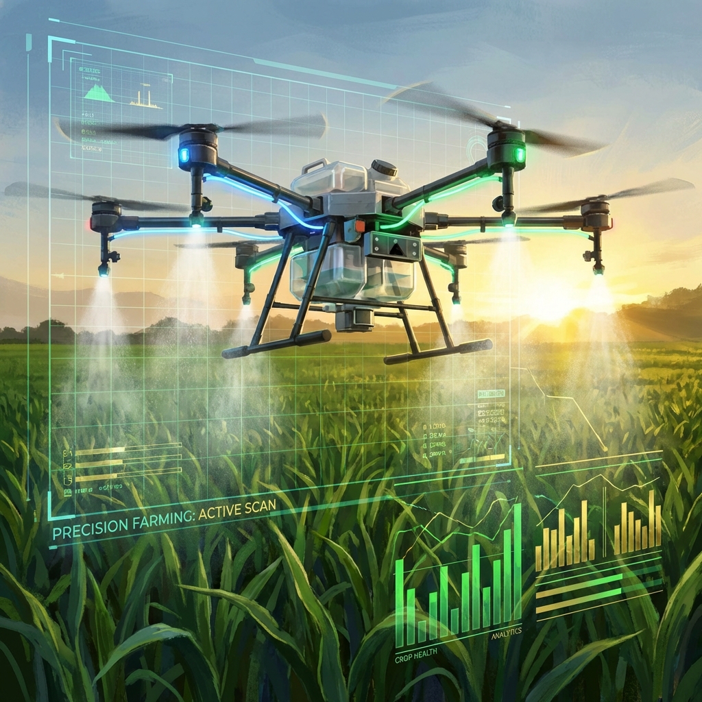 Analisis kesehatan tanaman dan sensus perkebunan menggunakan sensor multispektral.